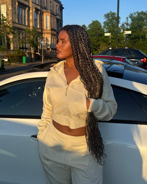 Cocoburry Cropped Half-Zip Hoodie Ivory